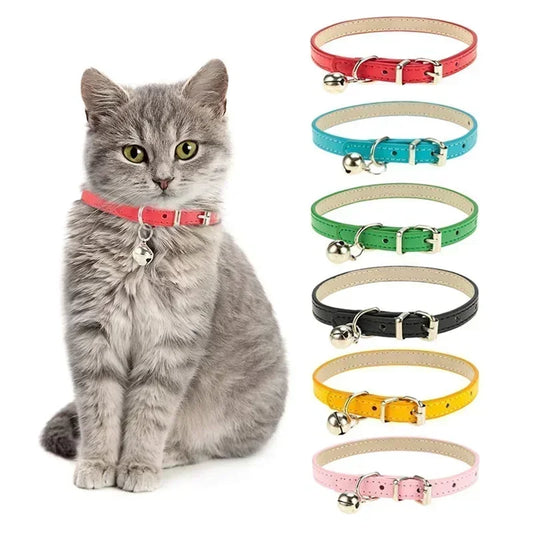 Adjustable Cat Collar Soft Genuine Leather Pet Collars for Cats Kitten Puppy Small Dogs Pet Accessories Cat Collar with Bell